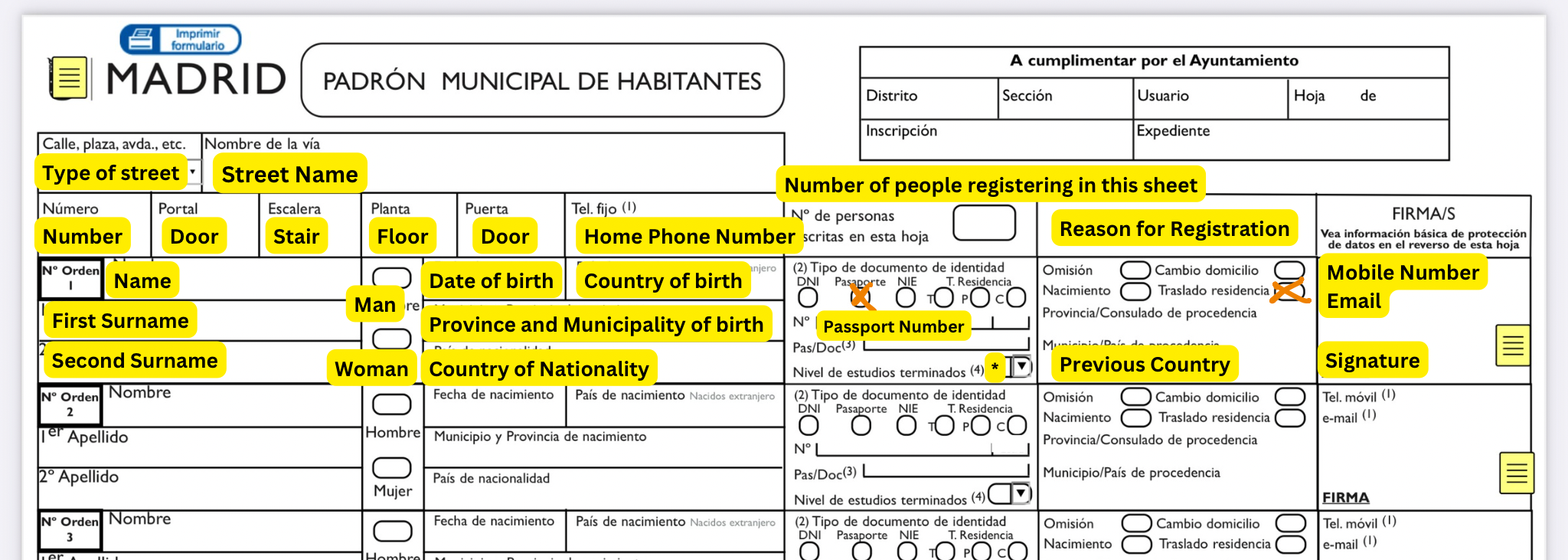 Fill in the Empadronamiento Form as per the below. You can download it here: